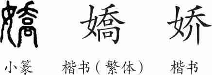 “娇”是形声字。小篆从女,乔声。隶变楷书后写作“嬌”。汉字后简化写作“娇”。