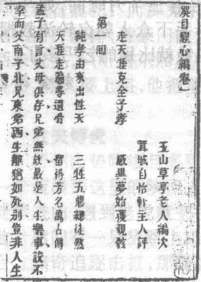 清代白话短篇(拟话本)情世小说集。又名《最新今古奇观》。十六卷三十九回。题“玉山草亭老人编次,葺城自怡轩主人评”。作者杜纲(1740? —1800?),字振三,号草亭老人,江苏昆山人。成书于清乾隆五十七年(1792)。