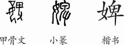 “婢”是会意兼形声字。甲骨文从妾,从卑(卑下),会卑贱的女子之意,卑兼表声。小篆将左边的“妾”换成了“女”,并整齐化。隶变后楷书写作“婢”。