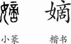 “嫡”是形声字。小篆从女,啇声。隶变后楷书写作“嫡”。
