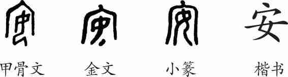 《说文·宀部》:“安,静也。从女在宀下。”(安,安宁。由“女”在“宀”下会意。)