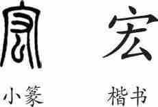 “宏”是形声字。小篆从宀(房屋),厷声。隶变后楷书写作“宏”。
