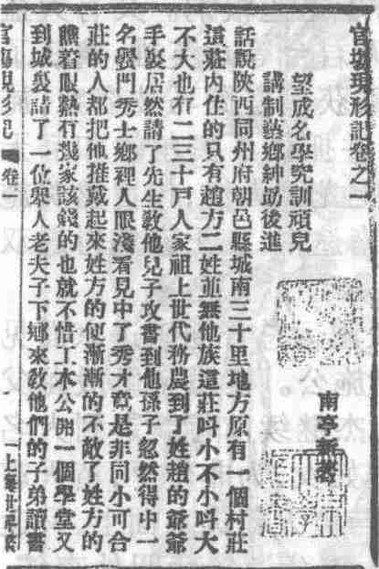 清光绪上海世界繁华报馆铅印本《官场现形记》正文书影