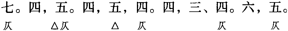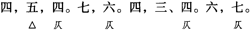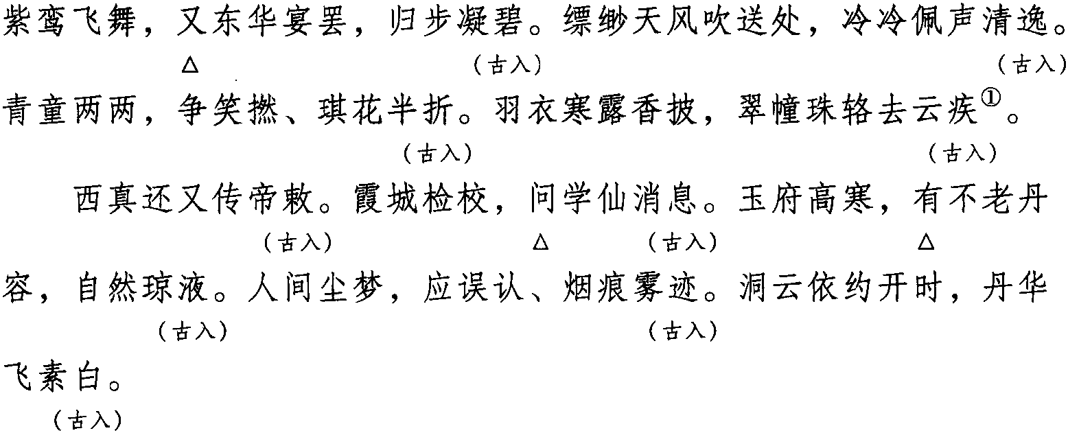 注:一、本词例押古入声“质” “屑” “陌” “职”韵。因“质” 在现代韵中属“衣” 韵,“屑” “陌”在古韵中与“闭” “碧” 同韵,而“闭” “碧”在现代韵中属 “衣”韵; “职” 与“忆” 在古韵中同韵,而“忆” 在现代韵中属“衣”韵,故全调可押衣部“衣”韵。