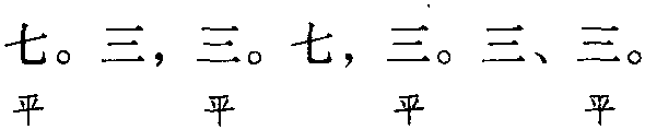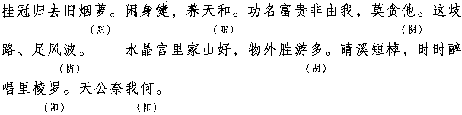 注:本词例押歌部“歌” “波”韵。其中,“他” 在现代韵中与“迦” 同韵,而“迦” 在古韵中属“歌” 韵。故“他” 可押“歌” 韵。