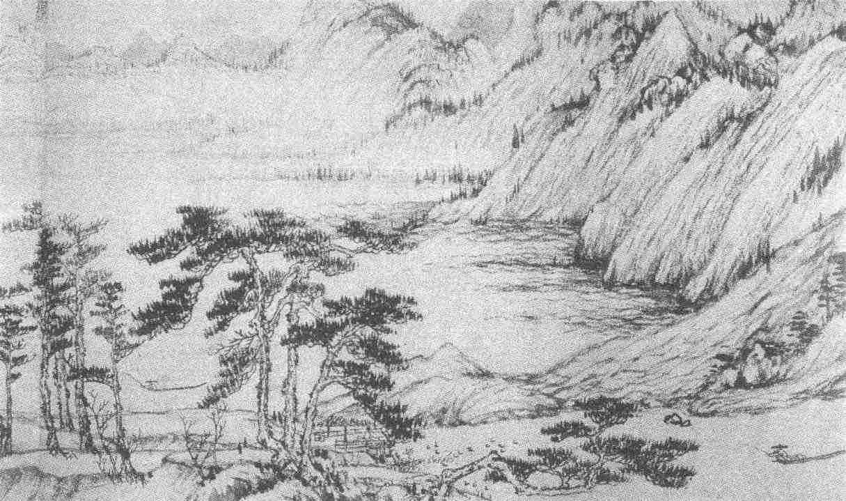 元代山水画挣脱了宋画的具象羁绊,走向意象的自由抒写;技法上也从多湿笔而变为重干笔,是中国山水画史发展中的一次飞跃。足为代表的作者当推黄公望。前人评议他的山水画“实为元季四大家之冠”,并非溢词。