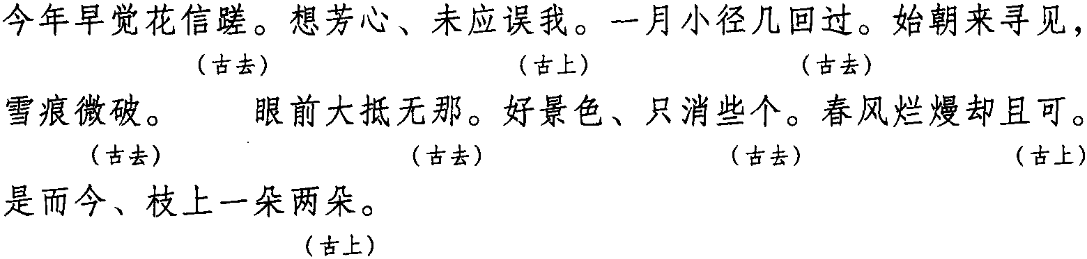 注:本词例押古上声“哿”韵,古去声“个” 韵。因 “哿” “个” 在现代韵中属“歌” 韵,故全调可押歌部“歌”韵。 |