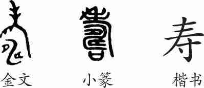 (表示耕耙过后田地上的纹路)声。小篆承之。隶变后楷书写作“壽”。汉字简化后写作“寿”。