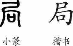 “局”是会意字。小篆从尺(表示人腿),从口(表范围),会人腿受限制而屈曲之意。隶变后写作“局”。