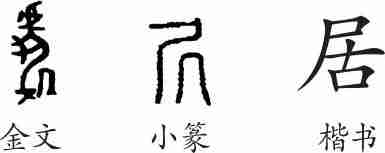 《说文·尸部》:“居,蹲也。从尸古者,居从古。踞,俗居从足。”(居,蹲踞。由尸、古会意的缘故,就在于蹲踞是从古而来的习俗。踞,“居”的俗字,从足。)