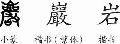“岩”是形声兼会意字。小篆从山,嚴声。隶变后楷书写作“巖”。汉字简化后写作“岩”。