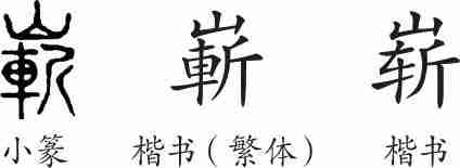 “崭”是后起字,为形声字。楷书繁体写作“嶄”,从山,斬声。汉字简化后写作“崭”。