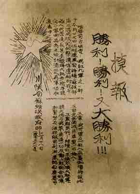 1932年底,红四方面军主力到达川北,创建了川陕苏区,并先后取得反“三路围攻”和反“六路围攻”的胜利。图为红四方面军反“六路围攻”的胜利捷报。