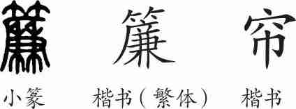 | 诗文 | 《帘》字义,《帘》字的字形演变,小篆隶书楷书写法《帘》 |