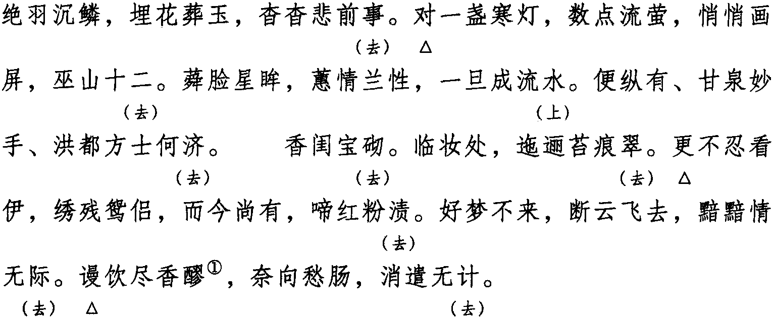注:一、本词例押衣部“衣”韵。其中,“水”在古韵中与“衣” 同韵,“翠”在古韵中与“寘” 同韵,而“寘”在现代韵中属“衣”韵。
