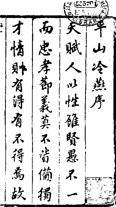 清顺治刊本《平山冷燕》序书影