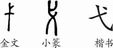 “弋”是象形字。金文像一根带杈的的小木桩。小篆整齐化、线条化。隶变后楷书写作“弋”。