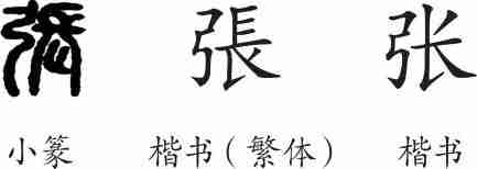 “张”是形声字。小篆从弓,长声。隶变后楷书写作“張”。汉字简化后写为“张”。