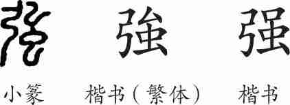 “强”是形声字。小篆从虫,弘声。隶变楷书后写作“強”。汉字简化后写作“强”。