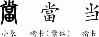 “当”是形声字。小篆从田,尚声,表示两田相对等。隶变后楷书写作“當”。汉字简化后写作“当”。