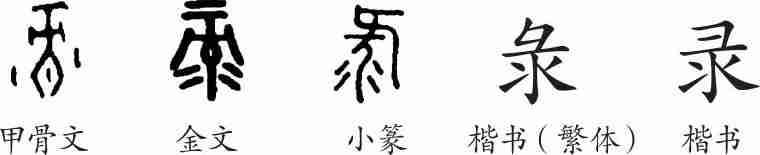 “录”是象形字。甲骨文像用钻钻木取火之形。隶变后写作“彔”。如今规范化作“录”。