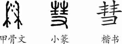 “彗”是象形兼会意字。甲骨文像扫帚的形状。隶变后楷书分别写作“彗”。