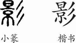 “影”是会意兼形声字。楷书写作“影”,从彡从景会意,景兼表声。