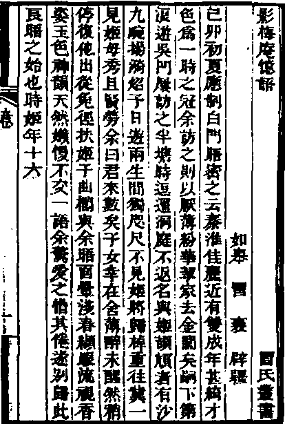 《如皋冒氏丛书》本《影梅庵忆语》正文书影