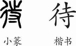 “待”是形声字。小篆从彳(街道),寺声。隶变后楷书写作“待”。