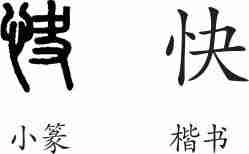 “快”是形声字。小篆从心(表示与人的内心有关),夬声。隶变后楷书写作“快”。