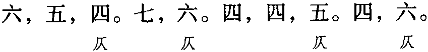 注:一、本词例押古入声“物” “月” “屑” 韵。因“月” “屑” 在现代韵中属“些”韵,“物” 在古韵中同 “迄” 韵,而“迄” 与 “些” 属通韵,故全调可押些部“些” 韵。