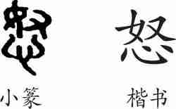 “怒”是形声字。小篆从心,奴声。隶变后楷书写作“怒”。