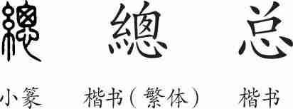 “总”是形声字。小篆从糸,悤声。隶变后楷书写作“總”。汉字简化后写作“总”。