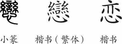 “恋”是形声字。楷书繁体写作“戀”,从心,声。汉字简化后写作“恋”。