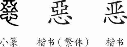 “恶”是形声字。小篆从心,亞声。隶变后楷书写作“惡”。汉字简化后写作“恶”。