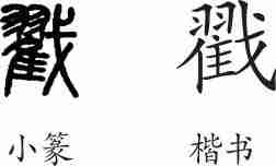 “戳”是形声字。楷书写作“戳”,从戈,翟声。