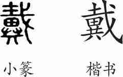 “戴”是形声字。小篆从異,()声。隶变后楷书写作“戴”。