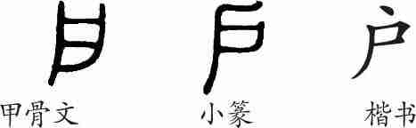“户”是象形字。甲骨文像一个单扇门的样子。小篆的形体与甲骨文非常相似。隶变后楷书写作“户”。