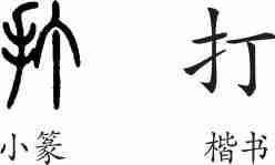 “打”是会意兼形声字。小篆从手,从丁(钉子),用敲击钉子会敲打、撞击之意,丁兼表声。