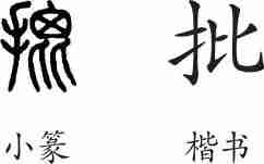 “批”是形声字。小篆从手,声。隶变后楷书写作“批”,改为比声。