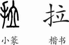 “拉”是会意兼形声字。小篆从手,从立,用将人扳倒会摧折之意,立兼表声。隶变后楷书写作“拉”。