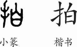 “拍”是形声字。楷书写作“拍”,从手,白声。