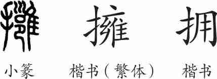 “拥”是会意兼形声字。小篆从手从雍会意,雍兼表声。隶变后楷书写作“擁”。汉字简化后写作“拥”。