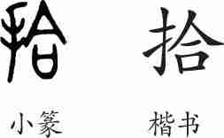 “拾”是形声字。小篆从手,合声。隶变后楷书写作“拾”。