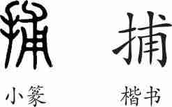 “捕”是形声字。小篆从手,甫声。隶变后楷书写作“捕”。