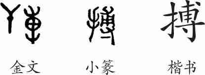 “搏”是形声字。金文从干或从戈,尃声。小篆改为从手。隶变后楷书写作“搏”。