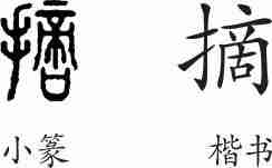 “摘”是形声字。小篆从手,啻声。隶变后楷书写作“摘”。
