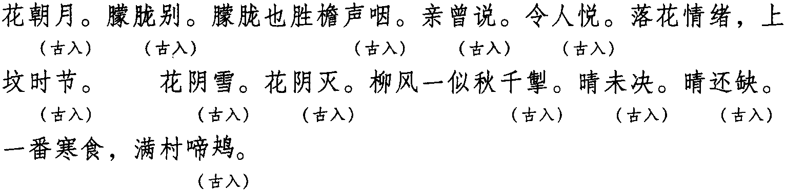 注:本词例押古入声“月” “屑”韵。因“月” “屑”在现代韵中属“些”韵,故全调可押些部“些” 韵。