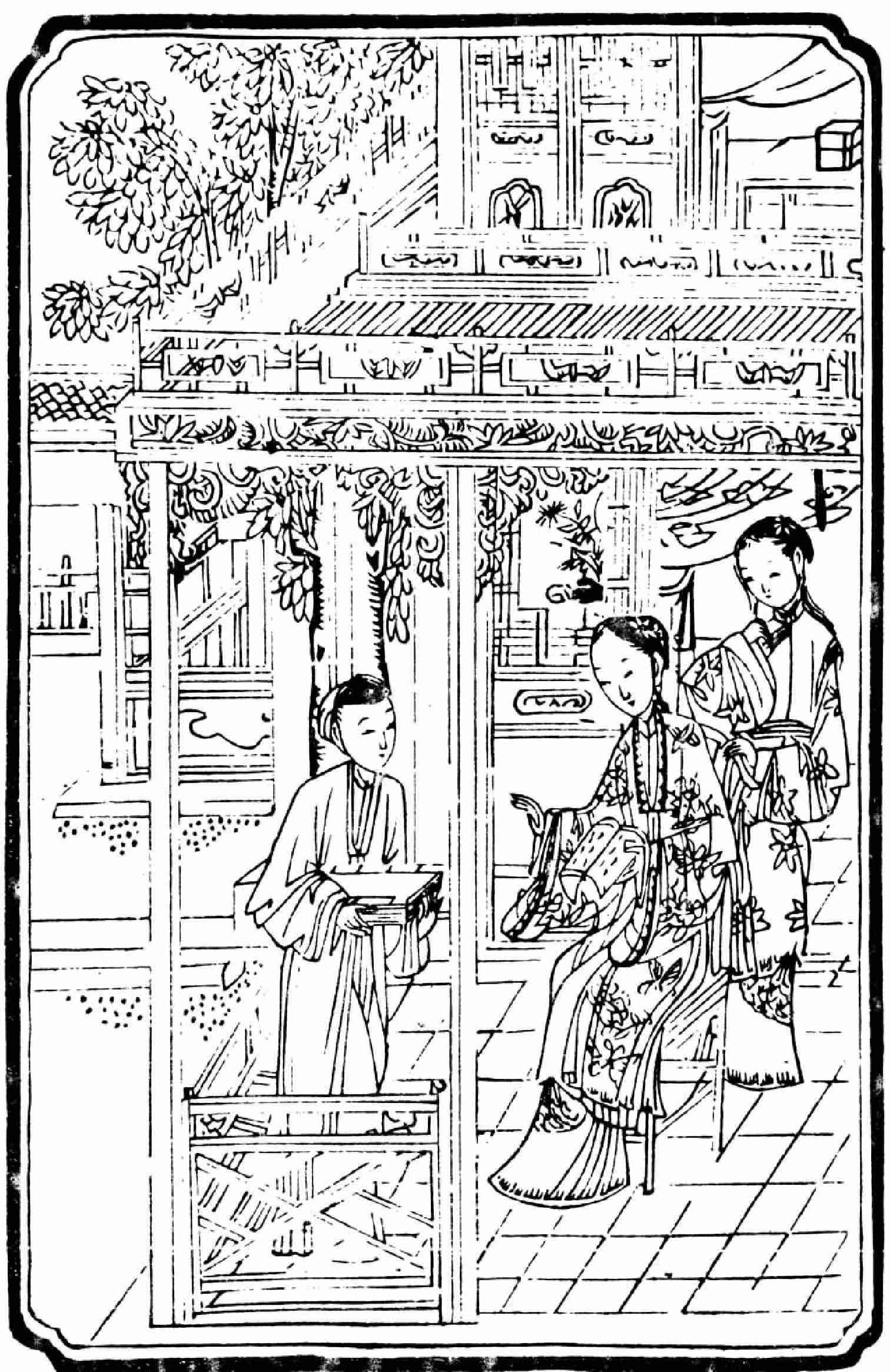 话说平儿陪着凤姐儿吃了饭,伏侍盥漱毕,方往探春处来。只见院中寂静,只有丫鬟婆子诸内壸近人在窗外听候。