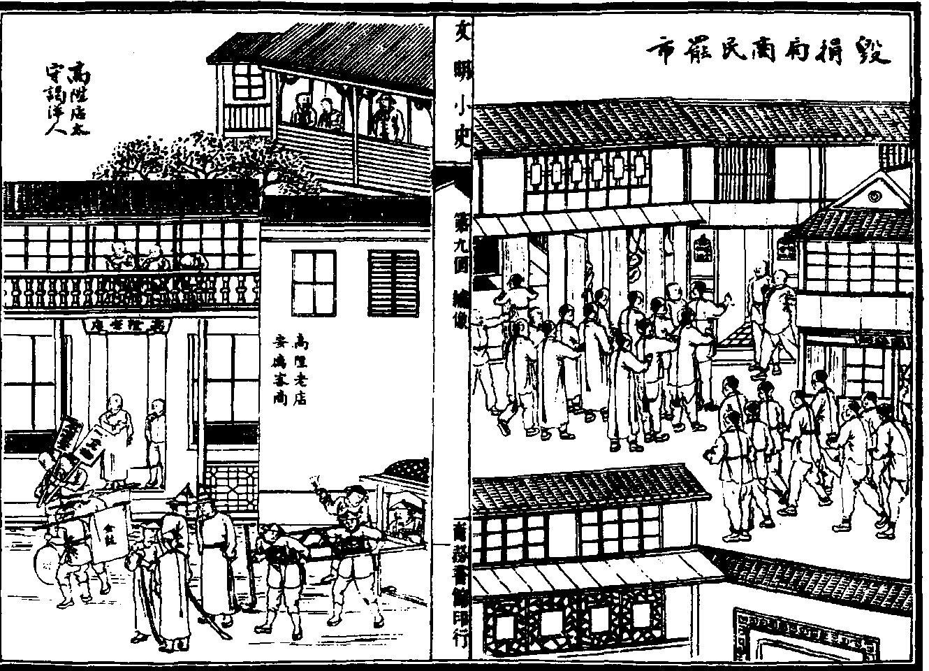 吴江县贾家世代一直是关着大门过日子的,贾子猷兄弟三个,除非亲友庆吊往来,甚么街上、镇上,从未到过。学台改革考试章程的告示,使贾氏兄弟心里头一次有了“时务掌故天算舆地”之类的新概念;而岁考的失败,使他们明白:“小题圣手”的吊渡钩挽之法,已经不合时宜了,推而广之,现在的事,大而一国,小而一家,只要有好法子,都可以改的。启蒙老师姚文通又开导他们:开发民智,全在看报。兄弟三个于是一天到晚,足足有三个时辰用在上海出的时报、旬报、月报上。贾氏兄弟